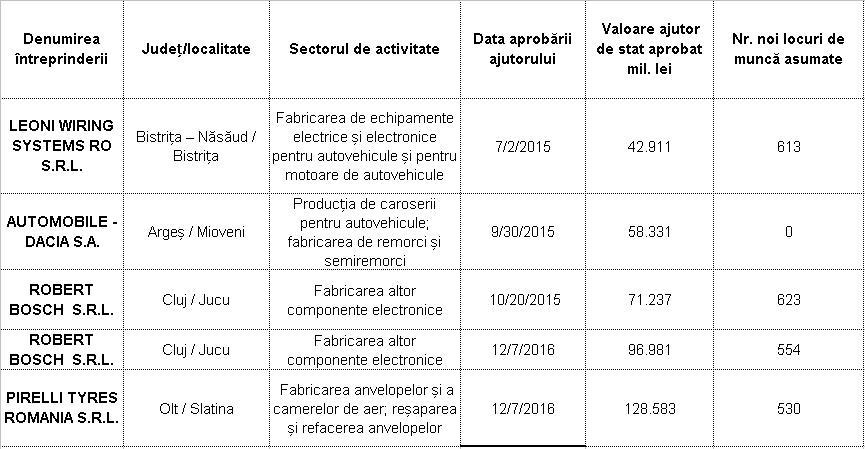Dintre cele 12 companii participante la schema de ajutor de stat, cinci aparţin industriei auto: